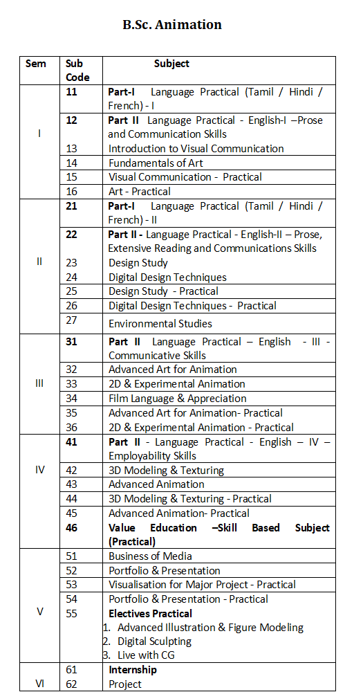 B.Sc. Animation conducted by Alagappa University, Karaikudi, Tamil Nadu through its Collaborative Applicable to all the candidates admitted from the academic year 2019 onwards.